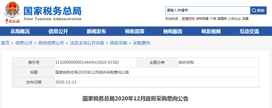 近日,国家税务总局发布了《国家税务总局2020年12月政府采购意向公告》,采购项目涉及金税四期决策指挥端之指挥台及配套功能建设项目。正式官宣"金税四期"的到来!