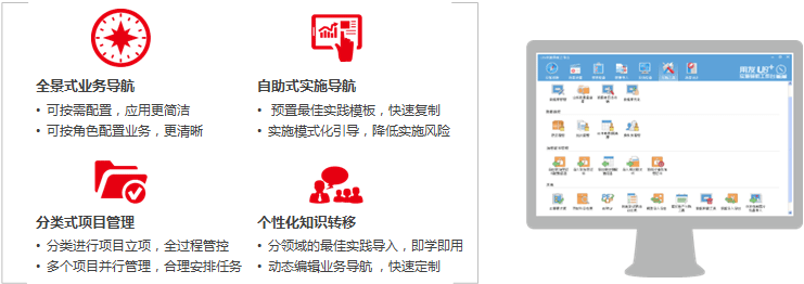 U8+可以为您提供简单适用、快速见效、低成本的实施工具,全面提升实施效能。