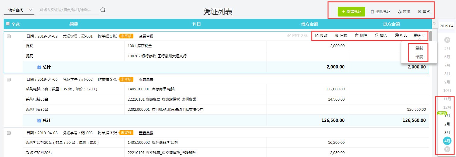 在【查看凭证】界面,选中需要插入凭证的后一张凭证;点【插入】,就会跳出编辑凭证页面,制单即可。例如选择002号凭证,点【插入】,那么这张新的凭证就会变成002号,后面的凭证号都自动+1。