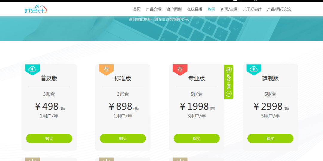 好会计软件目前根据功能节点、角色权限及售价分为精易版、普及版、标准版、专业版、旗舰版五个版本。