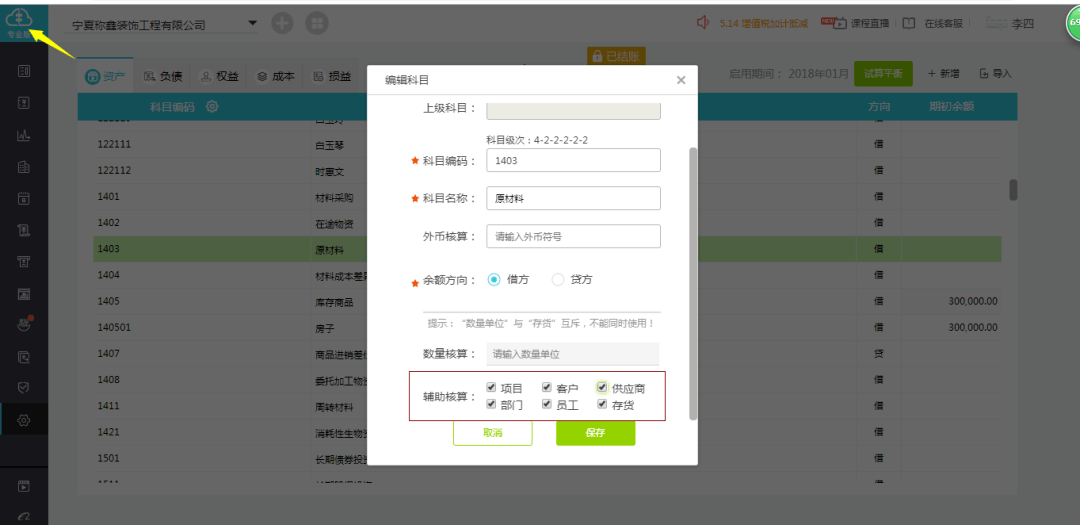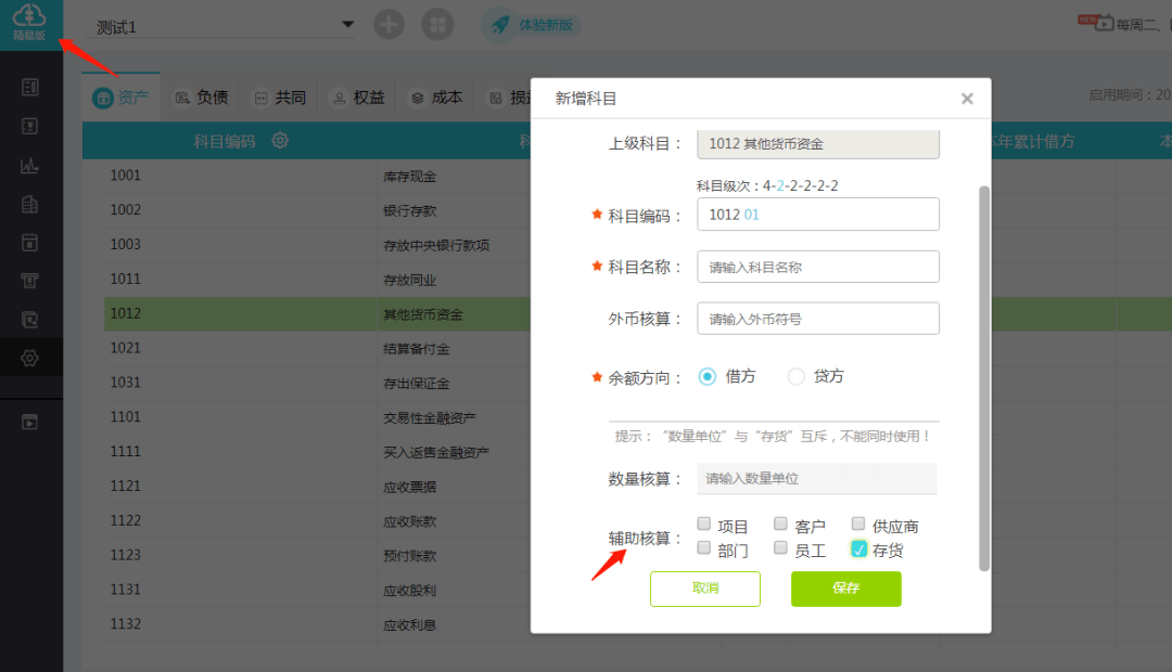 专业版支持多辅助核算(可以选择多个辅助核算项目在其后打钩,需注意:数量单位”与“存货”互斥,不能同时使用!)