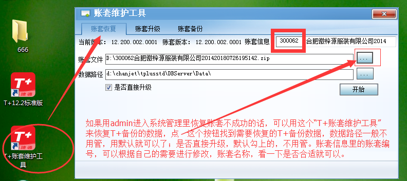 注:T+账套维护工具的图标,如果桌面上没有的话,可以到【开始】---【所有程序】---【畅捷通T+12.X标准版】---【工具箱】里找,然后按照上面的操作方法操作就可以了。