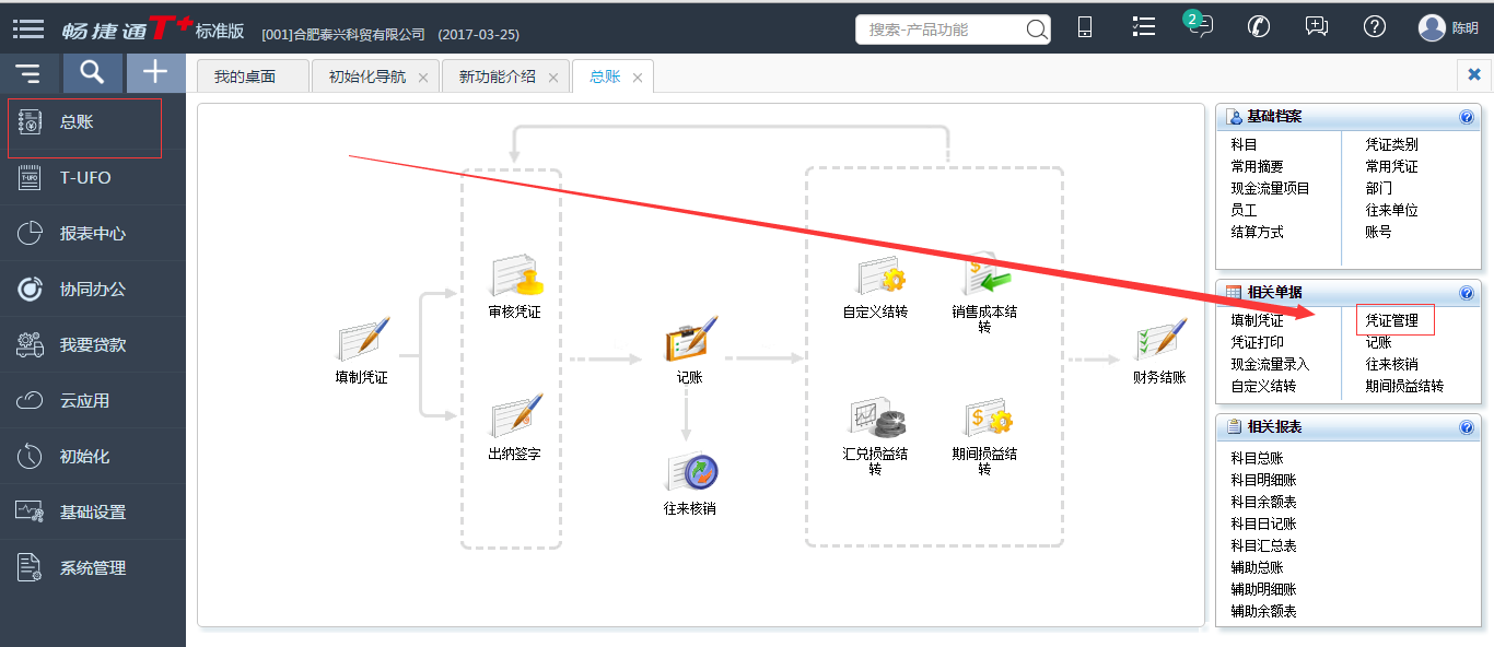 点总账——>凭证管理,选择需要取消记账的凭证,按Ctrl+Alt+H ,弹出提示框,点击是。