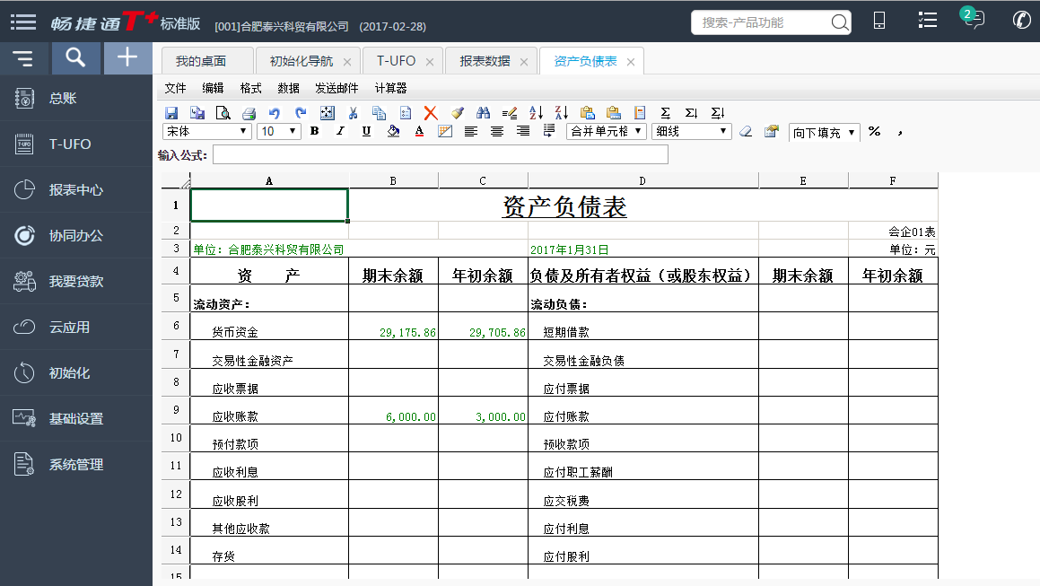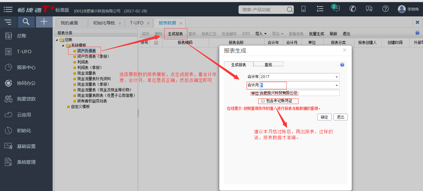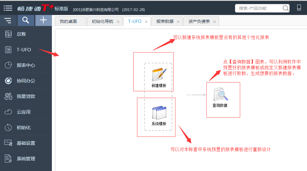 在T+软件里,通常本月的账做完了,就可以用T-UFO报表系统生成本月的相关财务报表,如资产负债表、利润表等。T+软件里的报表模板已经预置在软件系统中,不需要用单独做好的模板去取数的。