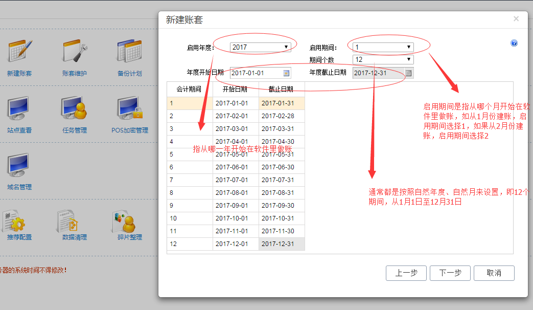 注:期间个数可为12、13、14、15、16;年度的起止时间可以跨年。但通常期间个数都是选择12,年度开始日期都是按照该年度1月1日至12月31日。