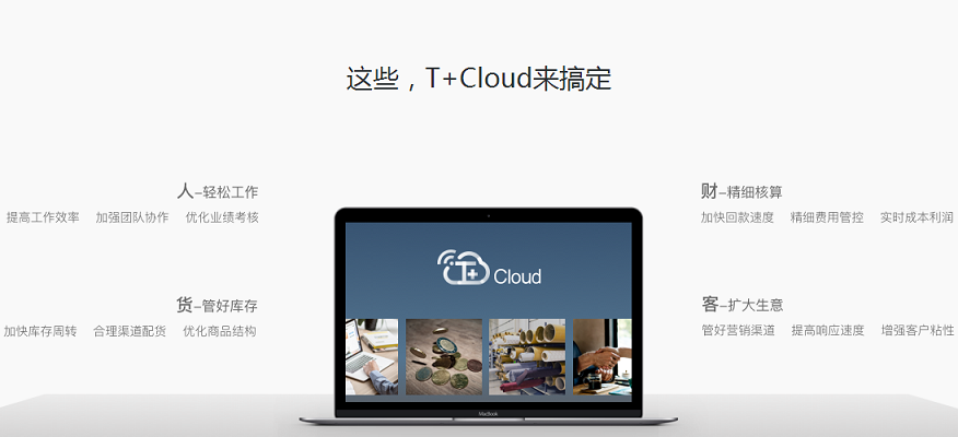 T+Cloud多方位解决企业管理“痛点” T+Cloud采用先进的SaaS模式,云租赁服务器,无需安装服务器,即可通过PC、平板电脑、智能手机等终端设备接入 互联网进行使用,并获得人财货客多方位的应用服务